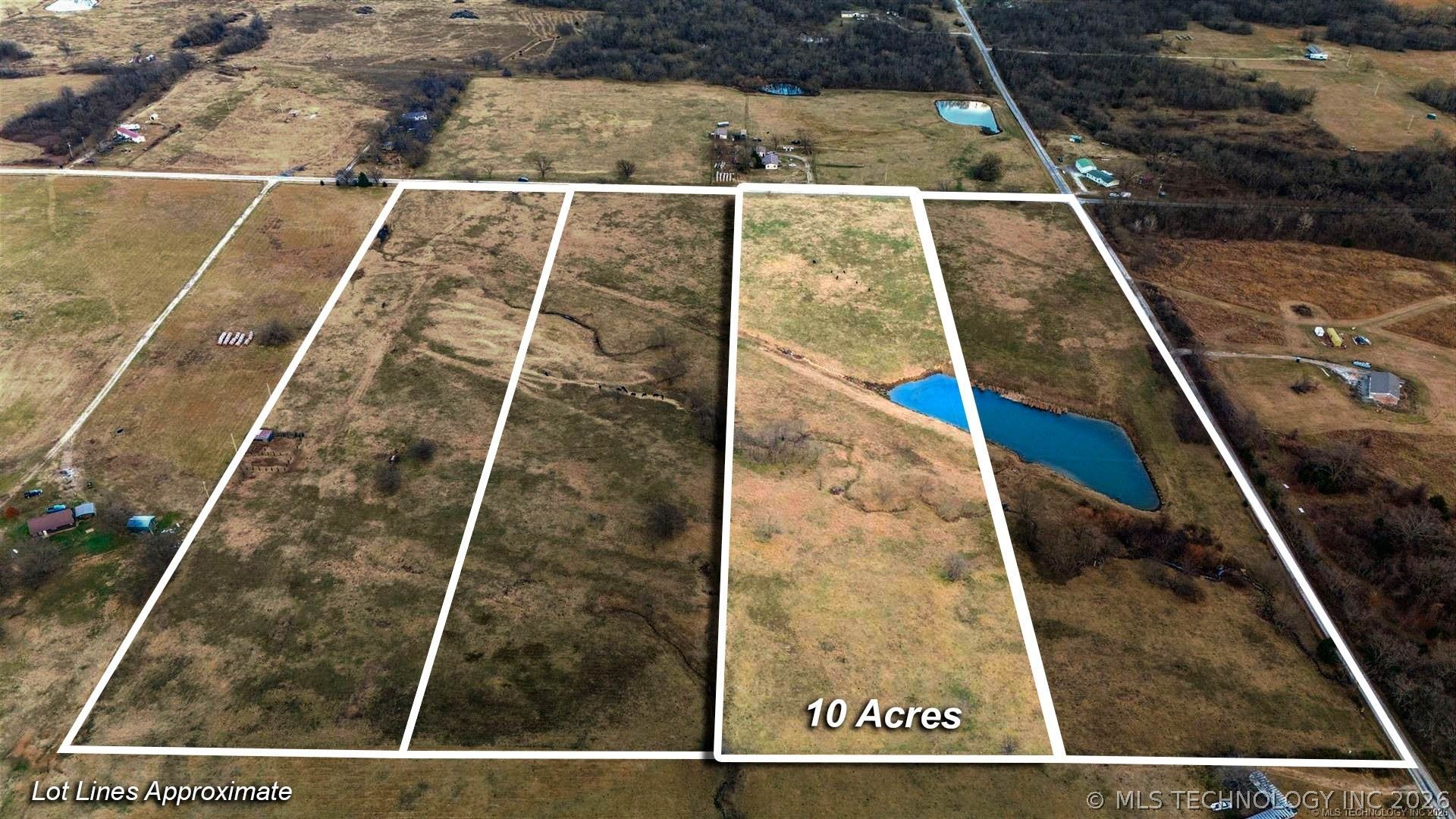 Parcel 3 of 4 - 10Acre tracts. Parcel 3 contains a partial pond with access to 4190rd. Gorgeous views for miles! Just south of Winganon Road. Utilities at the road (buyer to verify access). A great place to start your homestead, just minutes to Oologah Lake! 40acres total available, survey markers in place. Zoned AG, Roger's County. Winganon - Chelsea.