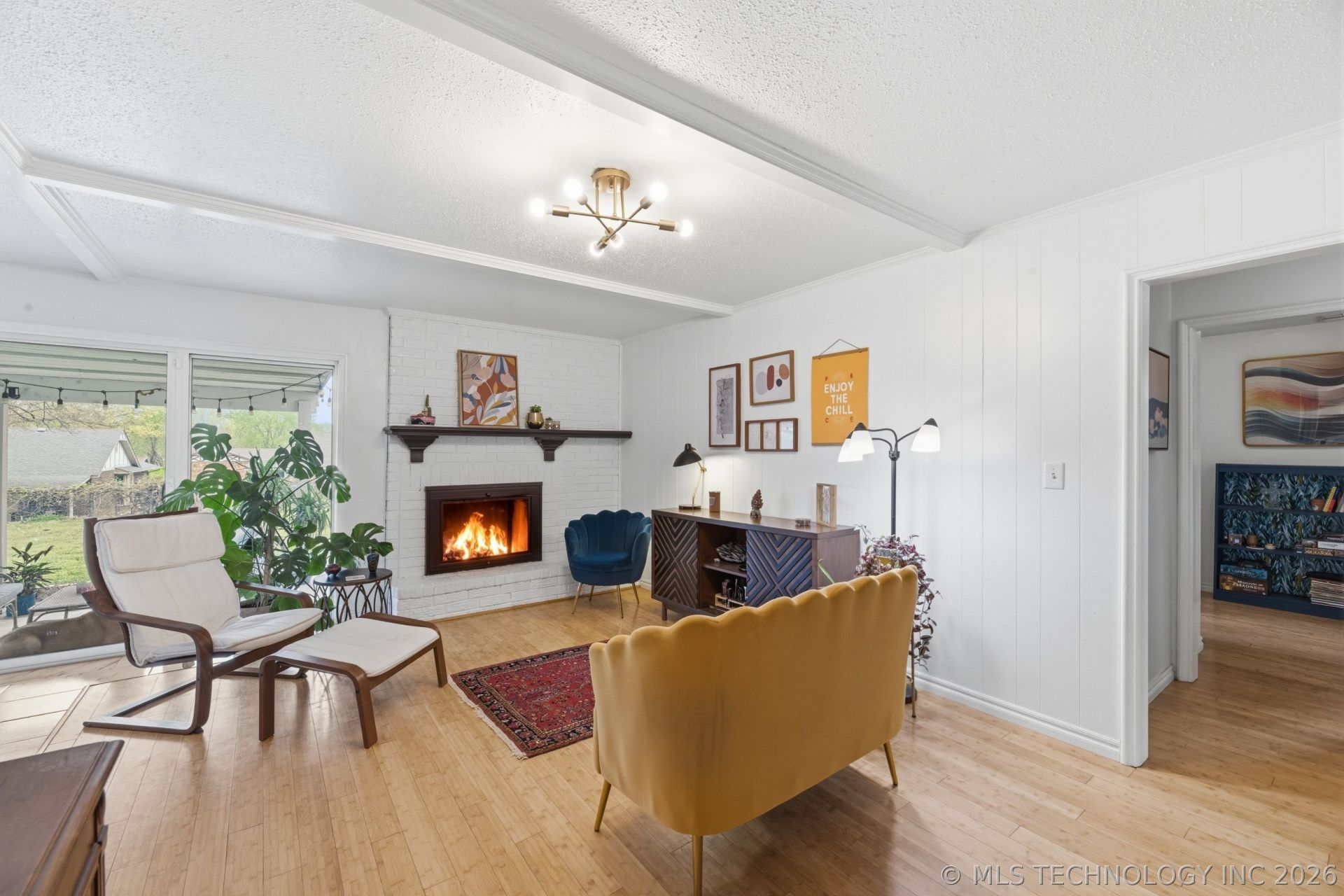 A stylish, mid-century modern is the aesthetic for this 3 bed/2 bath/2 car all brick bungalow in Owasso schools, Ator Elementary. Roof installed 2022. Furnace 2020. Home is in good condition, with no known issues. Recent Updates: Kitchen remodel floor tile, Bosch dishwasher, faucet, butcher block island seats 4, added cabinets and coffee bar area, painted all cabinets emerald green, installed new microwave. Added front storm door and all bedrooms have been re-painted. Primary bath has new floor tile and tiled niche in shower. Several new contemporary light fixtures have been added. Backyard is fully fenced and flat with nice covered patio area for relaxing and BBQ's! Flower beds have been added around the patio. Perfect location on a quiet, tree-lined street just a mile away from Smith Farm Market shopping center. The home is located between HWY 169 & HWY 75. It is about 7 miles from Tulsa Intl Airport.