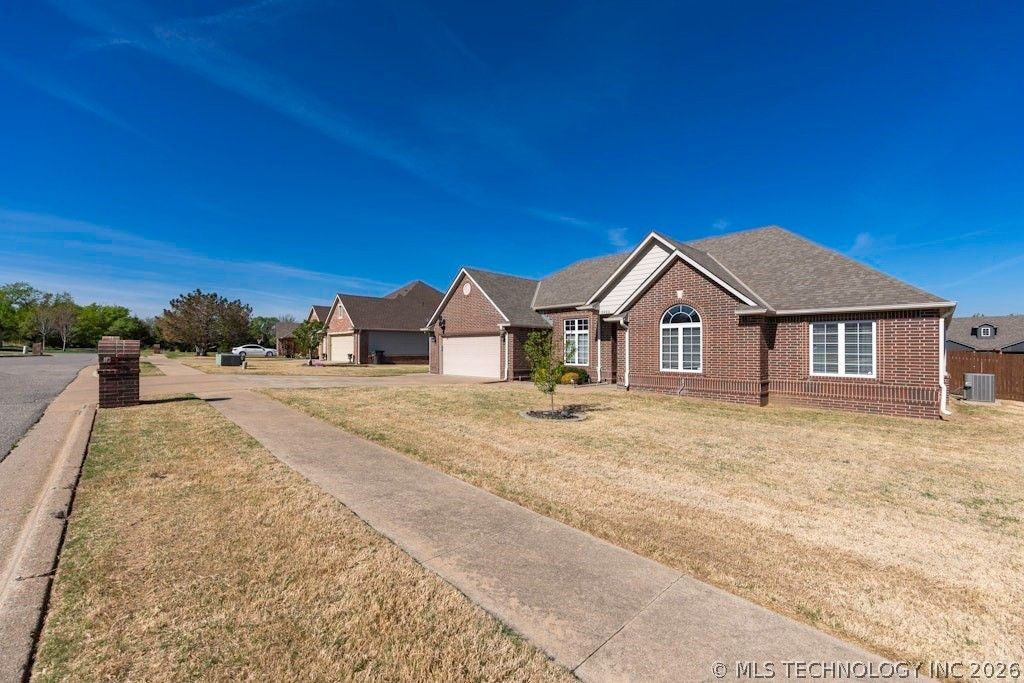 This one checks the boxes that are hardest to find together, updated finishes, serious garage space, a private fenced backyard with a large deck, and a quiet dead-end street in one of Bartlesville's most desirable school zones. Move-in ready and it shows. You're not inheriting someone else's to-do list.Fresh exterior paint (2025), deck and privacy fence repainted (2025), modern flooring, and new light fixtures throughout, all done in 2022. The kitchen is a standout. Granite countertops, double ovens, a lazy Susan cabinet, and a layout that opens naturally to the living space. Dishwasher, microwave, and range/oven stay. The living room has character built in. Wood-burning fireplace, built-in bookshelves and cabinets, and vaulted ceilings throughout. Storage is not a problem. Front entry coat closet, two hall closets, floored attic, a 3-car garage with a pass-through rear door opening to a concrete pad, perfect for a boat, trailer, or RV, plus an additional storage building on the property. The backyard is private and built for real use.Large deck, privacy fence, 0.30-acre lot, and a cul-de-sac with no through traffic. Zoned for Wayside Elementary and one minute from grocery shopping. Homes like this in this neighborhood don't sit-schedule your showing today.